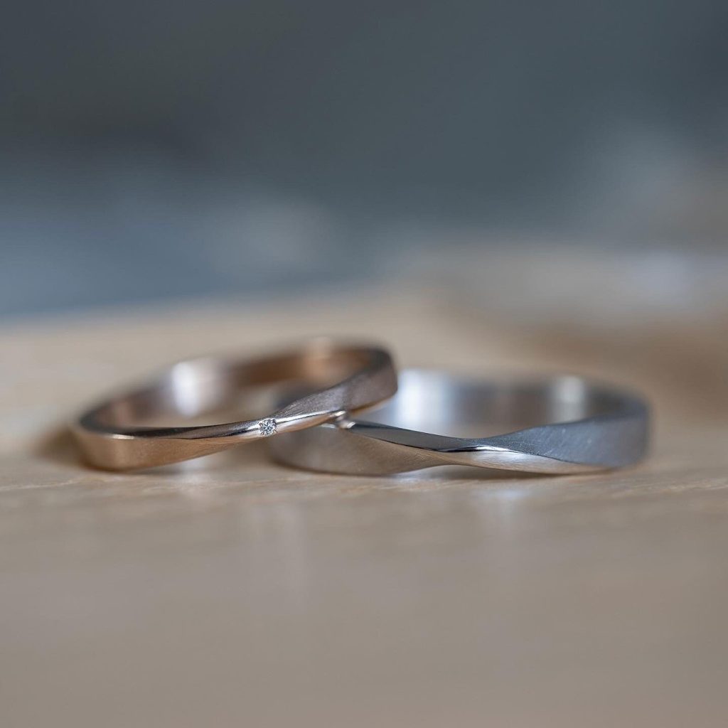ゆるやかな曲線が優しい印象のご結婚指輪。