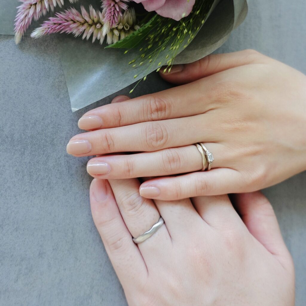 石:エメラルドカットダイヤモンド・メレダイヤモンド
