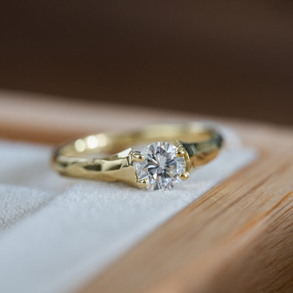 立爪の婚約指輪を普段使い用にリメイク 2023.3.19 カテゴリー: リメイク婚約指輪 宝石: ダイヤモンド 地金: K18グリーンゴールド 立て爪のエンゲージリングを アンティーク感のある指輪にリメイク。 鮮やかなグリーンゴールドに 柔らかな槌目加工を施し、 石の美しさが横からもしっかりと見える 存在感のあるデザインに仕上がりました。 ————————————————— 素材:K18グリーンゴールド テクスチャー:鏡面 石:メイン ダイヤモンド0.5ct —————————————————
